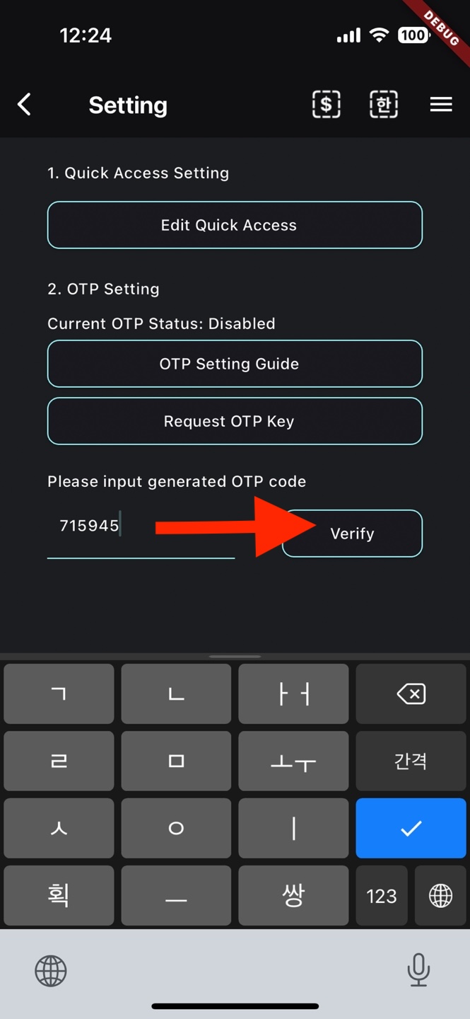 사용하시려는 OTP앱에 등록하시고, OTP번호를 Okeybit앱에 등록합니다.