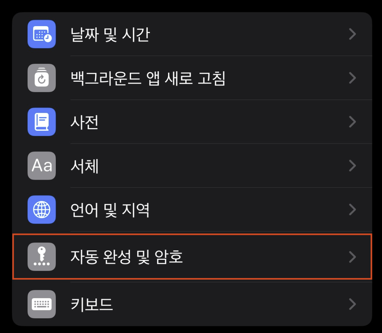 동일하게 '설정' 메뉴에서 '자동 완성 및 암호' 를 찾아 들어갑니다.